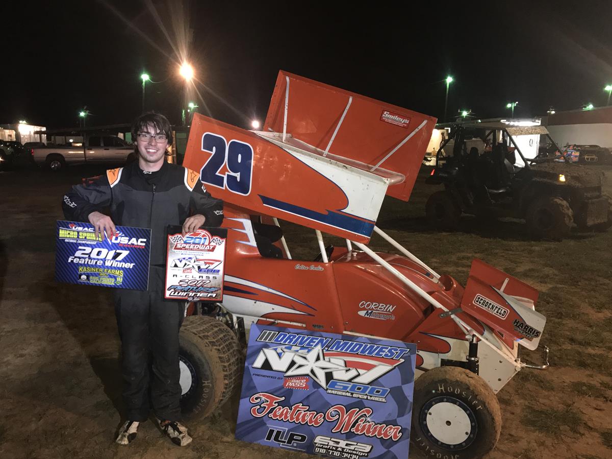 STEPHENVILLE, Texas (July 2, 2017) – Colton Corbin and Kale Drake each claimed victory in their respective divisions on Saturday night at the 281 Speedway with the Driven Midwest USAC NOW600 National Micro Series presented by MyRacePass.