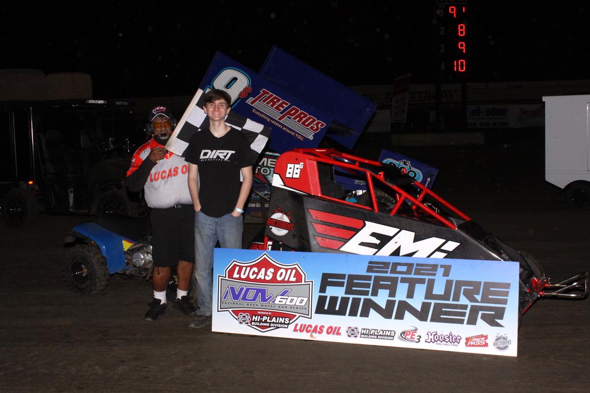 Inside Line Promotions – SAPULPA, Okla. (April 30, 2021) – Garrett Hulsey, Frank Flud and Corbin Rueschenberg each earned a trip into Victory Lane on Friday at Creek County Speedway during the first Lucas Oil National Open Wheel 600 Series presented by Hi-Plains Building Division event since March 7.