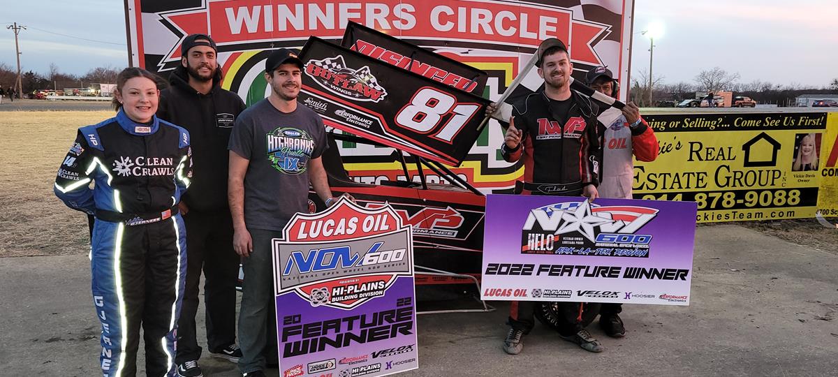 Bryan Hulbert – GREENVILLE, Texas (February 20, 2022) Wrapping up Round 2 of the 2022 Lucas Oil National Open Wheel 600 Series presented by Hi-Plains Building Division season-opening weekend at Superbowl Speedway, a field of 96 entries took on the quarter-mile oval with Frank Flud, Chase Brewer, and Jett Nunley rolling into Victory Lane.