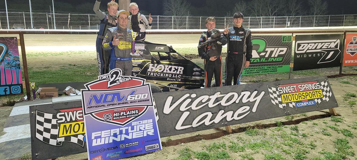 Bryan Hulbert – SWEET SPRINGS, Mo. (April 28, 2023) The long-awaited return of the Dirt2Media National Open Wheel 600 Series presented by Hi-Plains Building Division to Sweet Springs Motorsports Complex did not disappoint as Stone Smith and Ricky Thornton, Jr. scored their first career wins before Frank Flud slid his way into win No. 70.