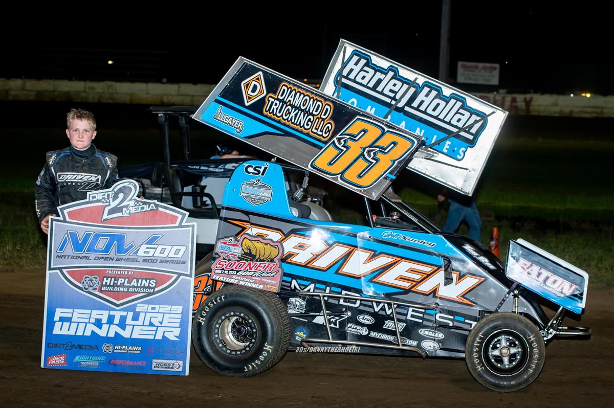 Bryan Hulbert – CANEY, Kan. (June 7, 2023) Kicking off the seventh Sooner 600 Week presented by Milestone Home Service, Co. at Caney Valley Speedway on Wednesday, June 7, the Dirt2Media National Open Wheel 600 Series presented by Hi-Plains Building Division added Cole Schroder and Austin Torgerson to the list of National Micro winner, while Jett Nunley overtook Ryan Timms on the all-time Restricted win list.