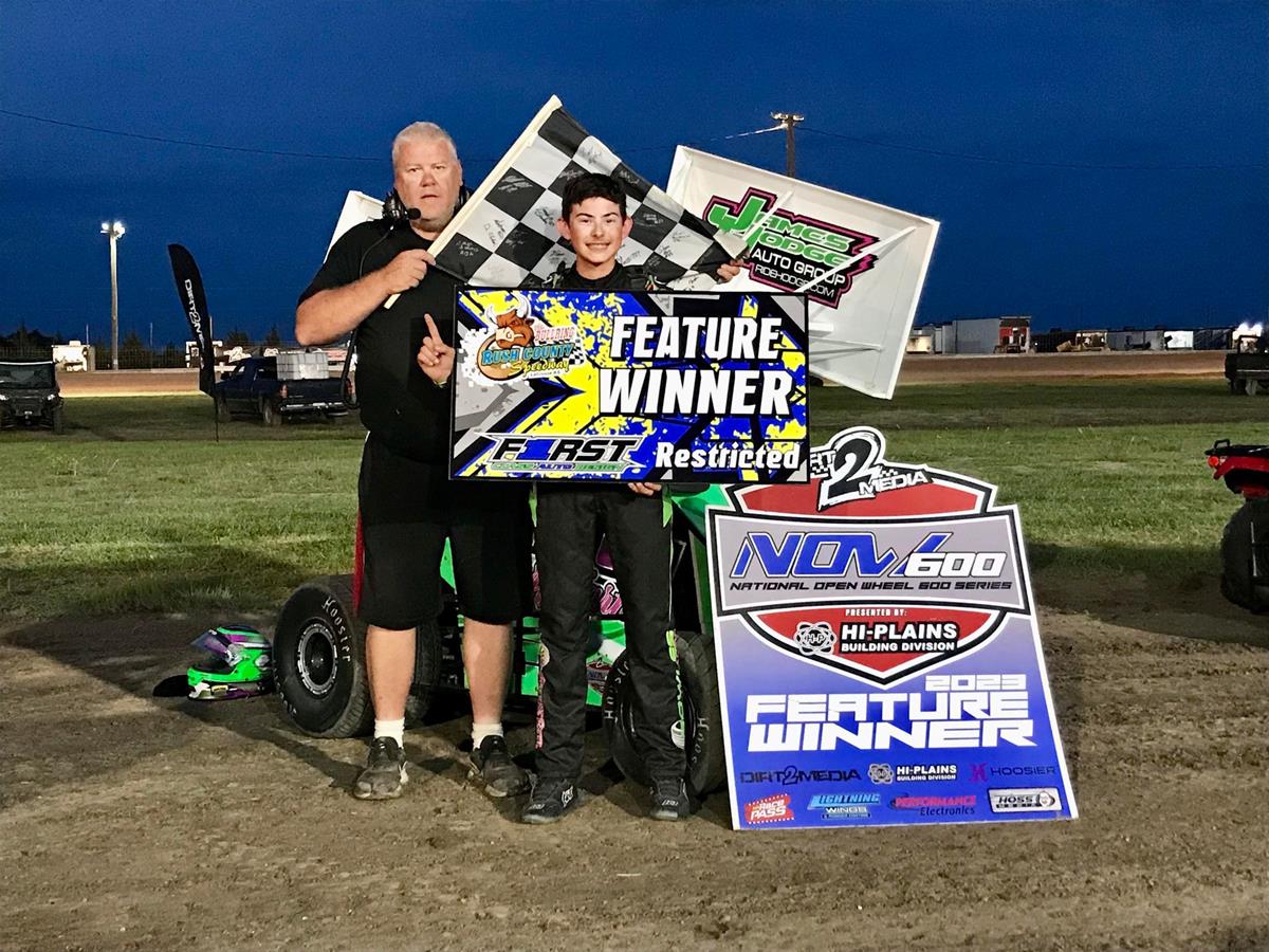 Bryan Hulbert – LA CROSSE, Kan. (July 6, 2023) Adding to their win totals with the Dirt2Media National Open Wheel 600 Series presented by Hi-Plains Building Division, Brant Woods and Trey Zorn each captured their second win in as many races in A-Class and Non-Wing, while Braxton Weger captured his second win of the 2023 season in Restricted.