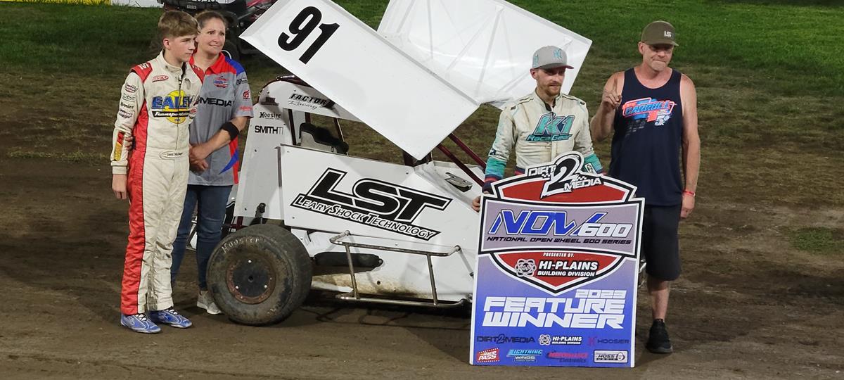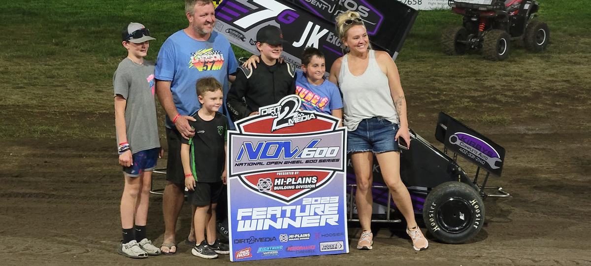 Bryan Hulbert – HASTINGS, Neb. (July 28, 2023) Racing all over KAM Raceway Friday night, the Dirt2Media National Open Wheel 600 Series presented by Hi-Plains Building Division, preliminary A-Feature wins went to Jett Hays in A-Class, Jason McDougal in Non-Wing, and Ollie Geiger in Restricted.