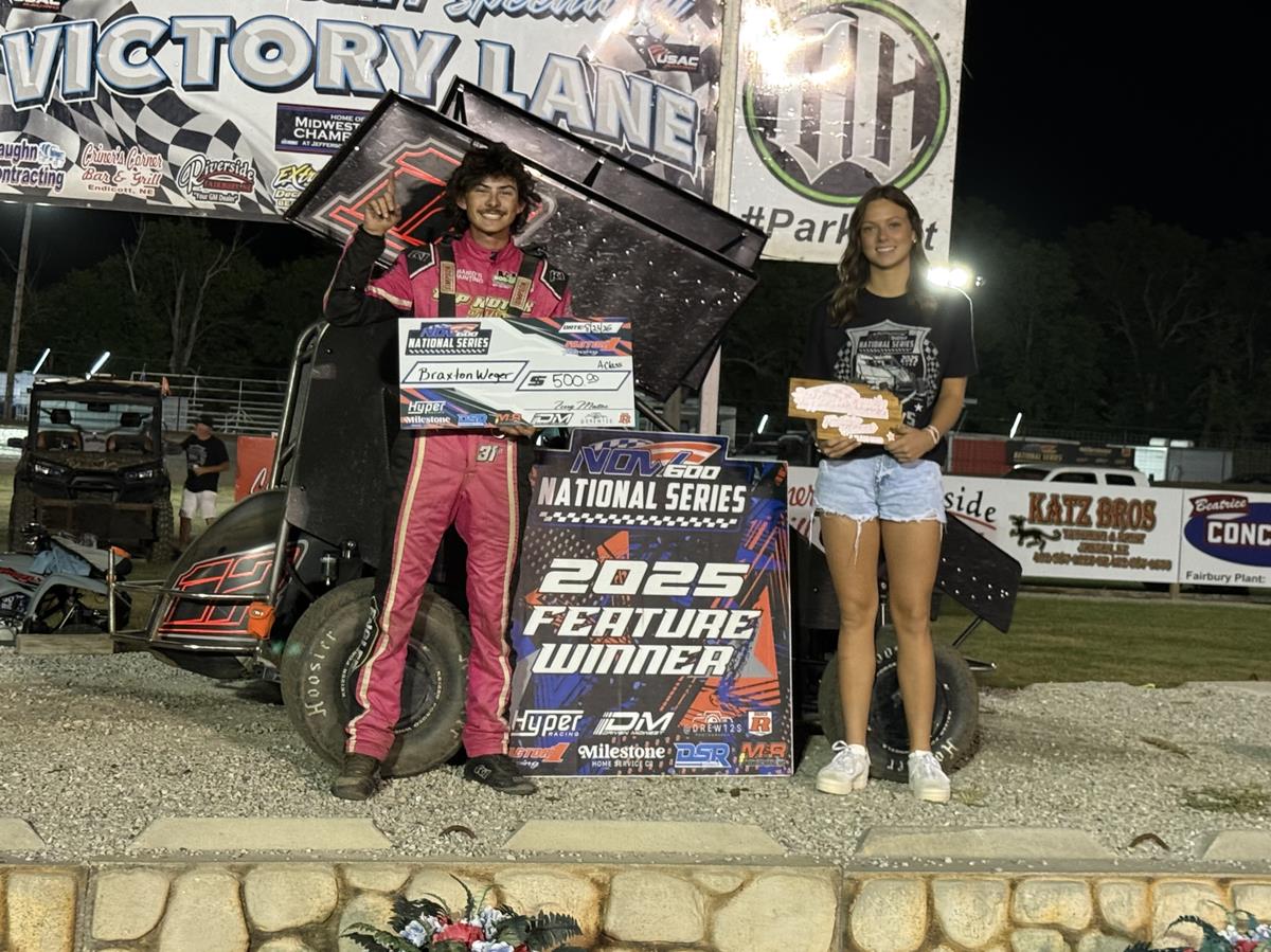 FAIRBURY, Neb. (August 24, 2025) - Jadyn Friesen, Braxton Weger, Tityn Roberts, and Brex Woods each tamed their respective NOW600 National Series fields on Saturday at Jefferson County Speedway.