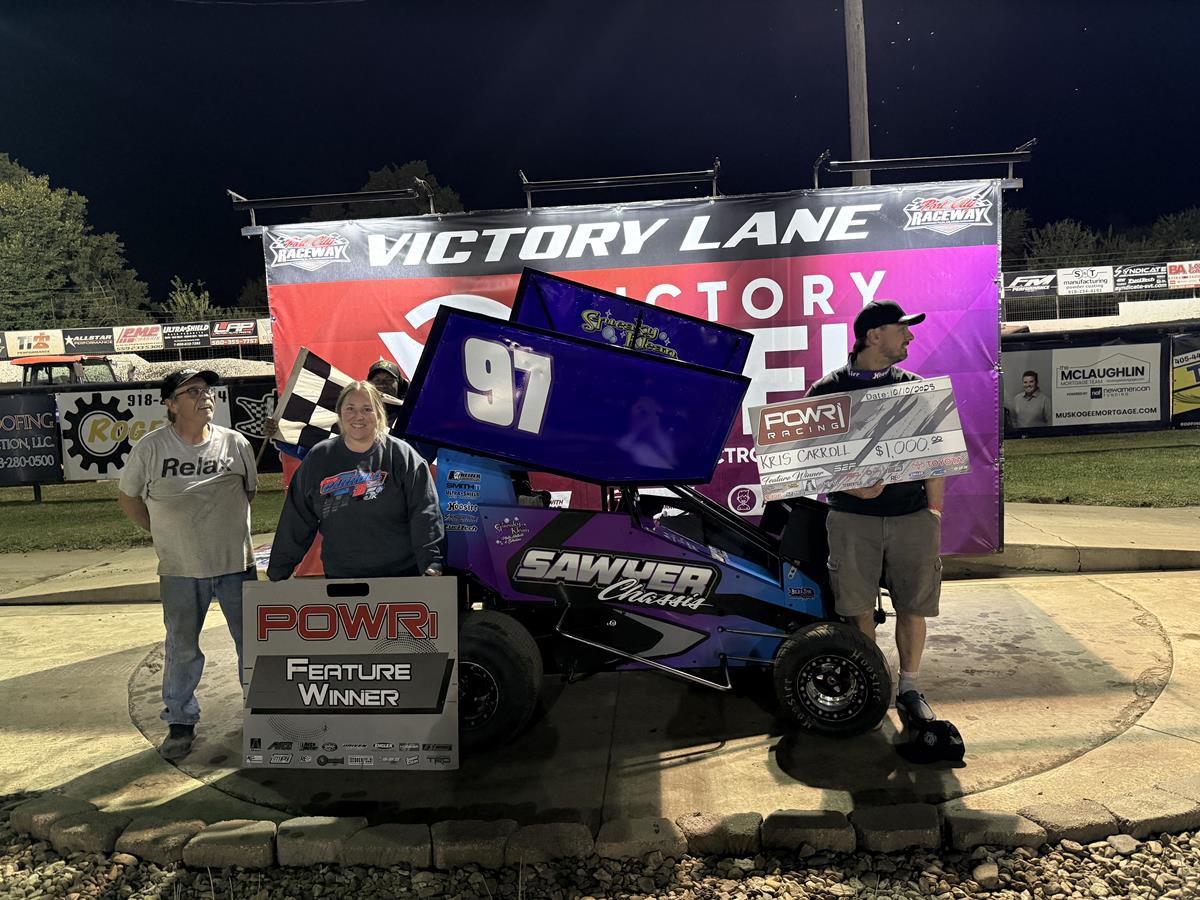 Jett Nunley claimed the feature victory in Hyper Racing Stock Non-Wing. Eli Morgan was victorious in Factory Fourteen A-Class Winged. Kris Carroll claimed victory in POWRi / NOW600 Outlaw Winged while Ryker Jones went to victory in M&R Manufacturing Restricted.